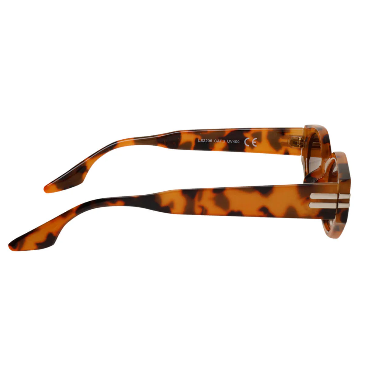 Matalat kulmikkaat aurinkolasit viimeistelevät kesäpäiväsi lookin. Ovaalit linssit ja laidoissa olevat metalliset koristeet antavat varmasti persoonallisuutta aurinkolaseille.