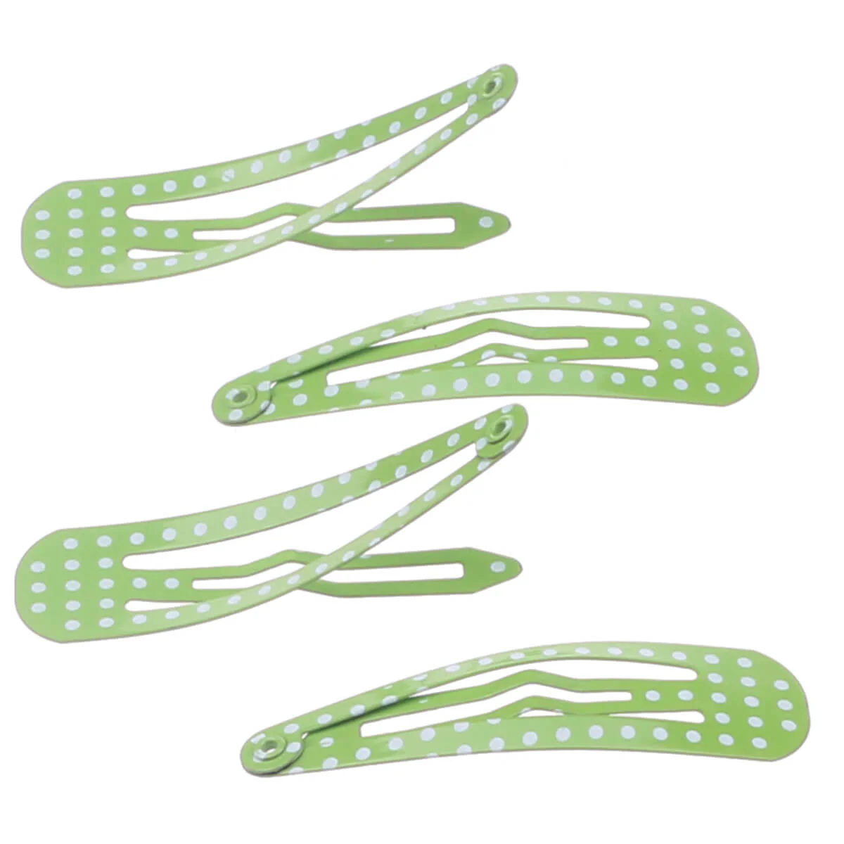 Clik clak on matala napsautettava hiuspinni, millä helposti saat etuhiukset pois silmiltä tai sivuhiukset kiinni. Tässä mallissa hauska pilkullinen kuviointi koristaa osaa pakkauksen klipseistä.