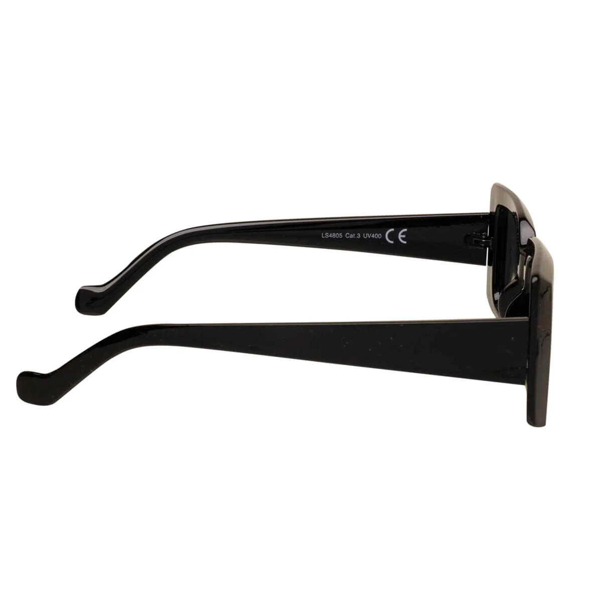 Suorakulmaiset aurinkolasit terävine kulmineen erottuvat varmasti. Vahvat kehykset korostavat aurinkolasien erottuvuutta kasvoilta.